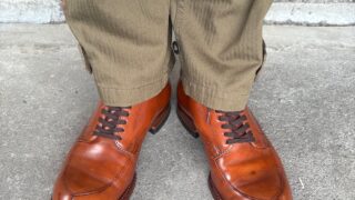 服 サイズ感は如何に、乾燥機にかけたWAIPER フランス軍M-47後期型レプリカパンツにオールデン Vチップ ▼先日も記事を書いたWAIPERさんのフランス軍M-47レプリカパンツ後期型ですが、サイズ23と24を購入していました。▼サイズ23ですと裾丈が68cmで、サイズ24ですと裾丈70cmでした。現在では私が購入したM-47レプリカパンツはサイ... 2025.10.12.(日)…07:53 服