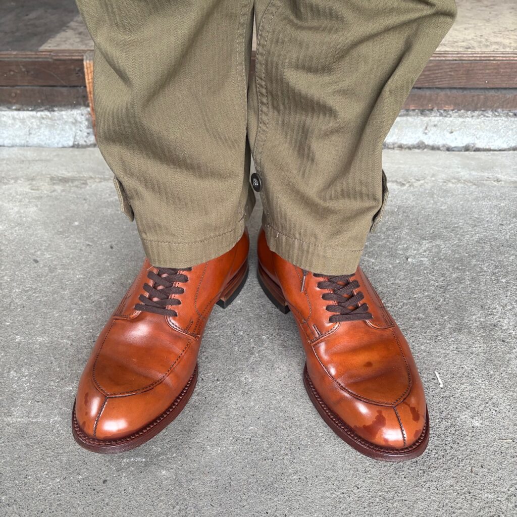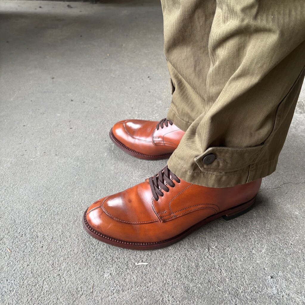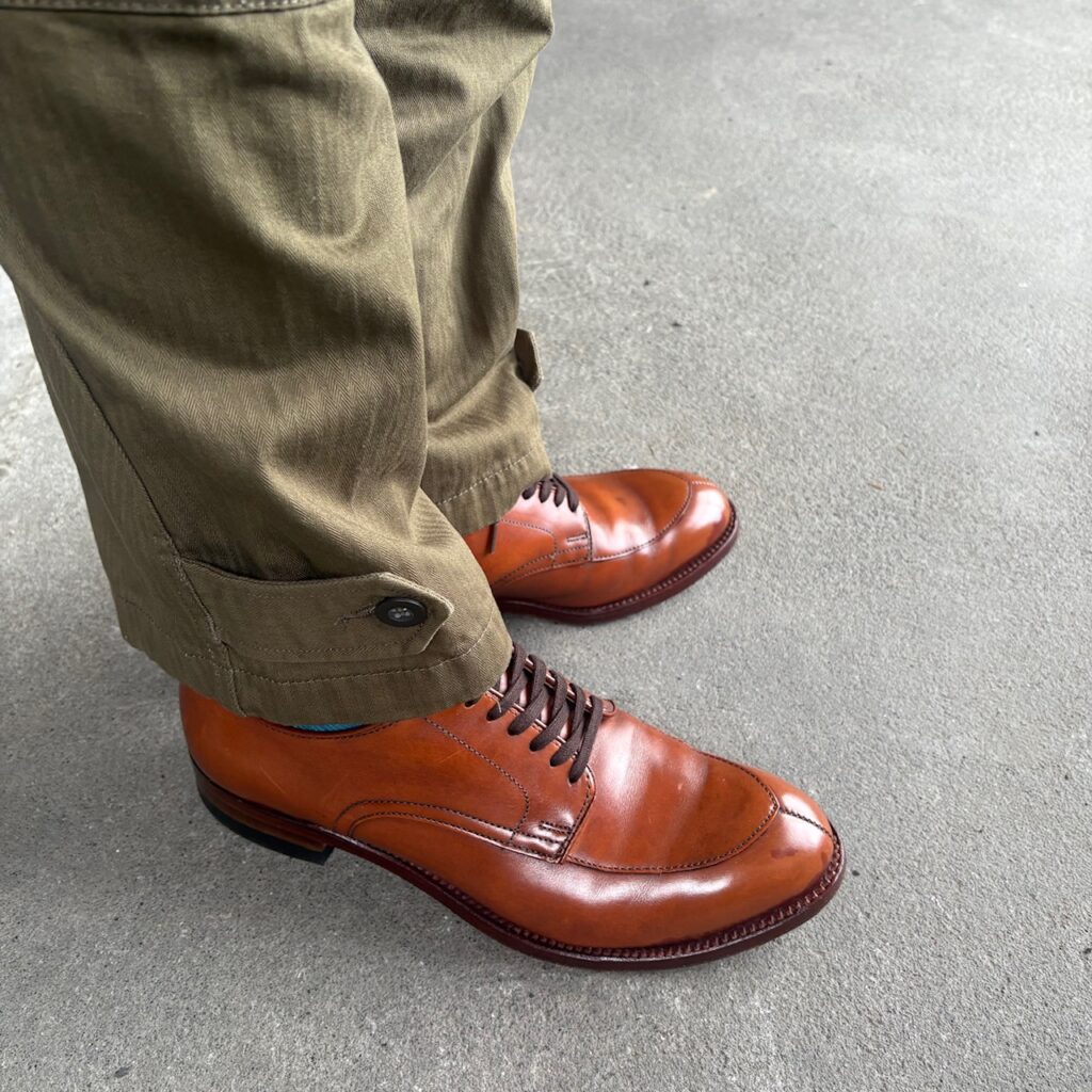 うまくいって、裾丈を含めて全体的に縮みましたので、オールデンのVチップと合わせてみました。