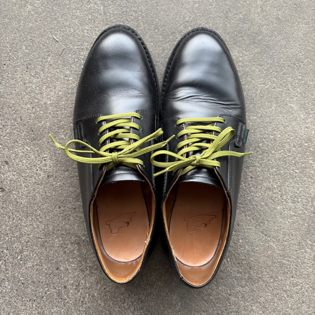 レッドウイングの101ポストマンシューズのシューレースを別の色に交換してみました。