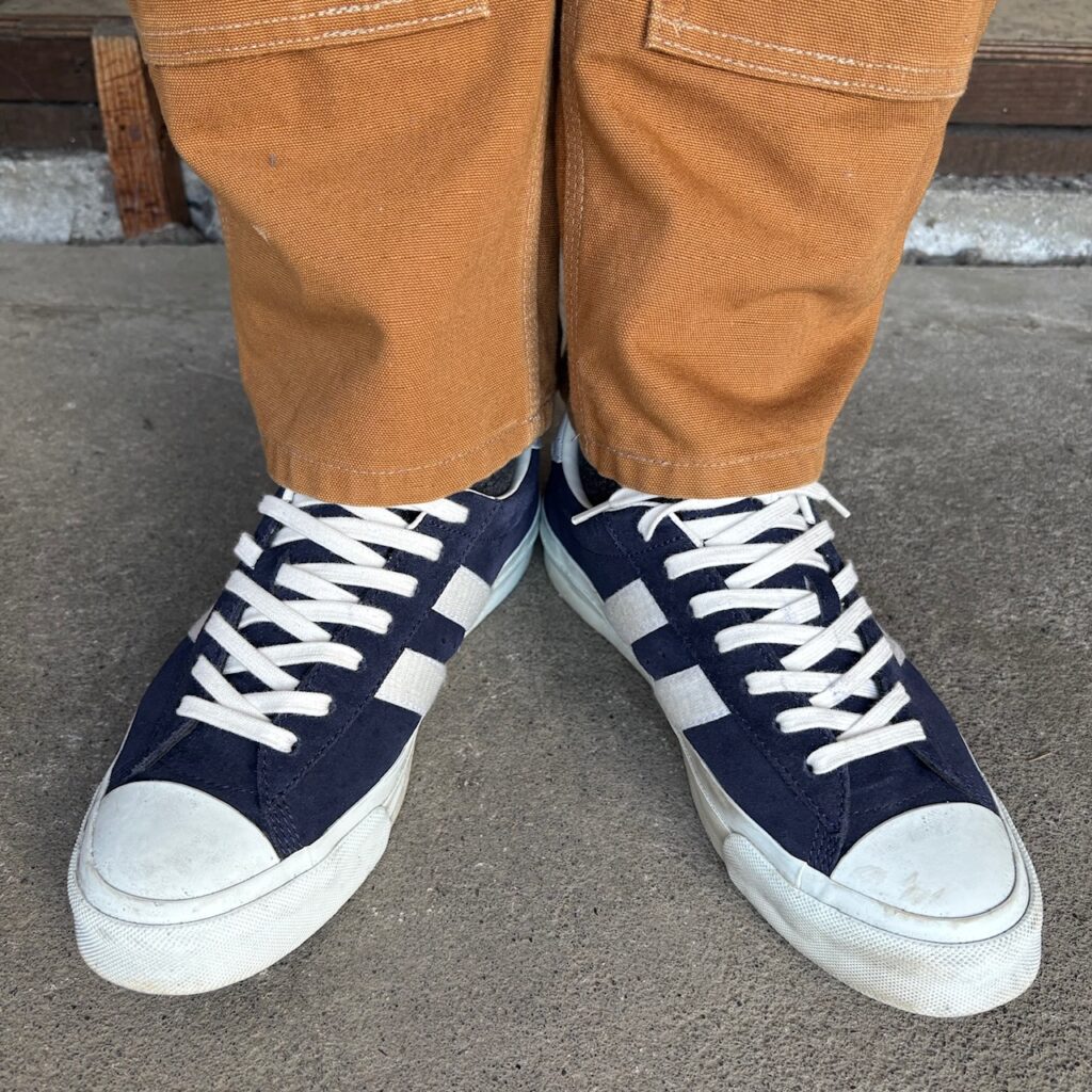 最初は細紐を装着していました。しかし、太紐の方が似合うか?と思い太紐に交換してしばらく履いていたのですが、なんとなく、自分のイメージと違うなと感じていました。