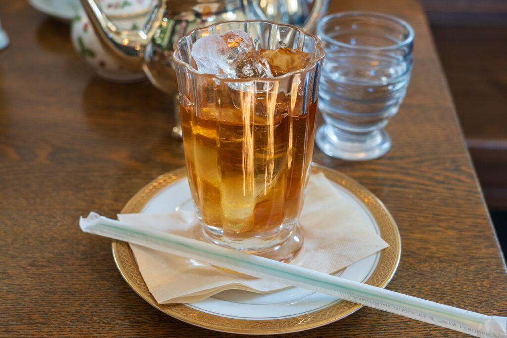 いただいたのは、アールグレイのアイスティーと木いちごのシフォンケーキです。