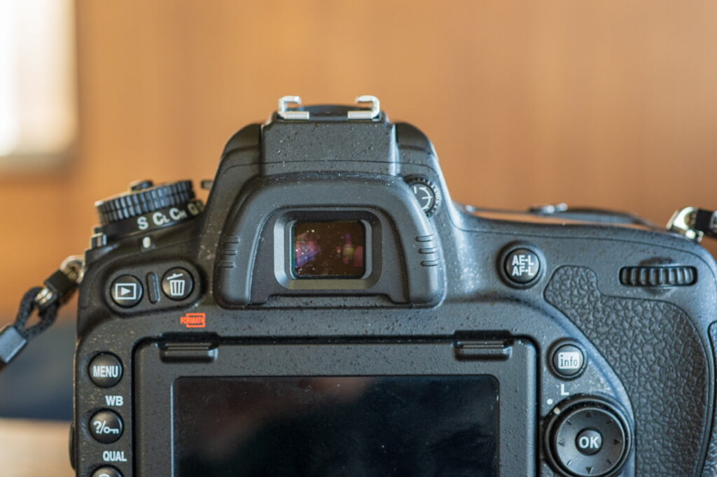 まずは、接眼部。D700はニコンのフラグシップ機と同じ丸窓なんです。D750では丸窓は採用されていません。従いまして、端的に格の違いがあると、私は信じています。