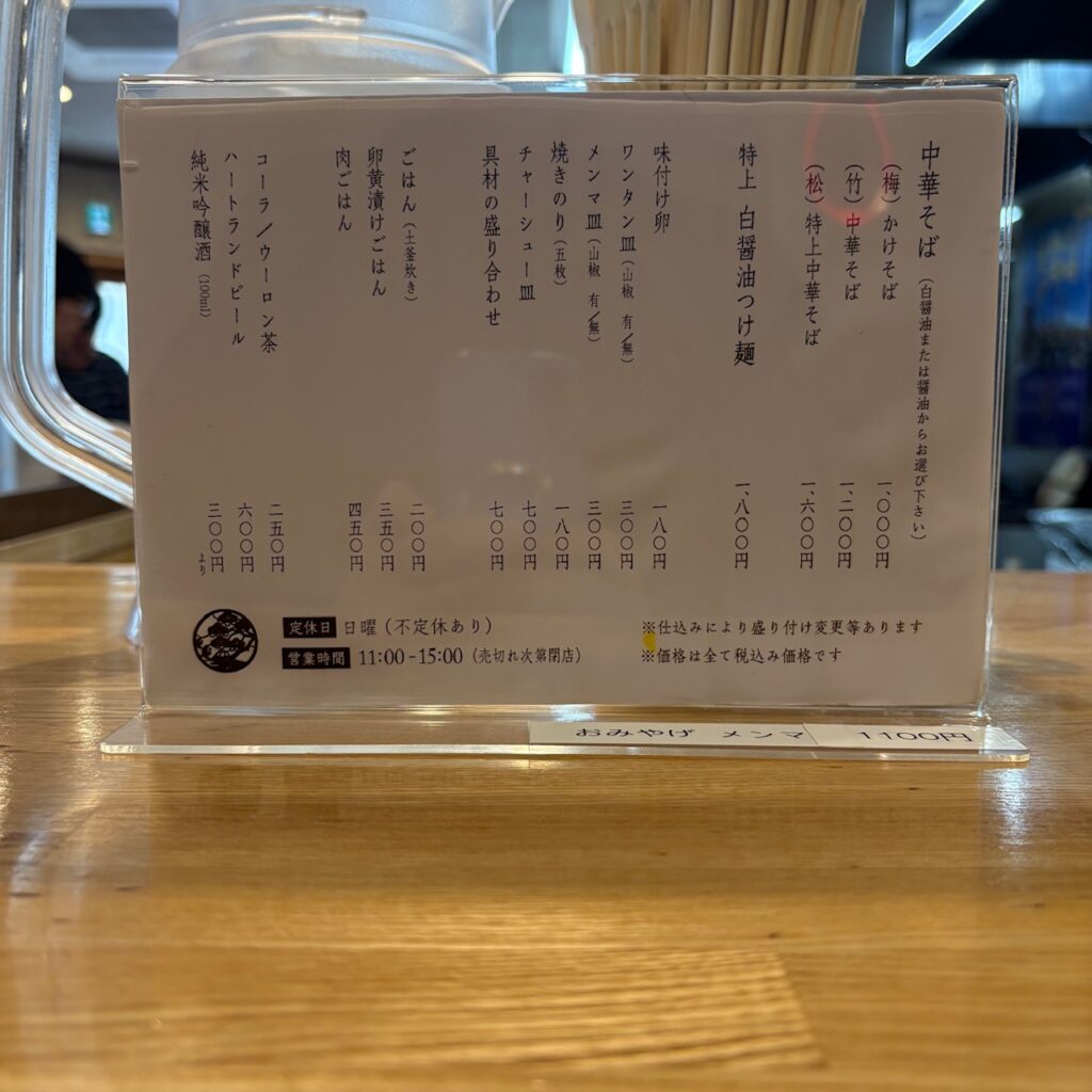 注文したのは、(松)特上中華そば1,600円、肉ごはん450円です。